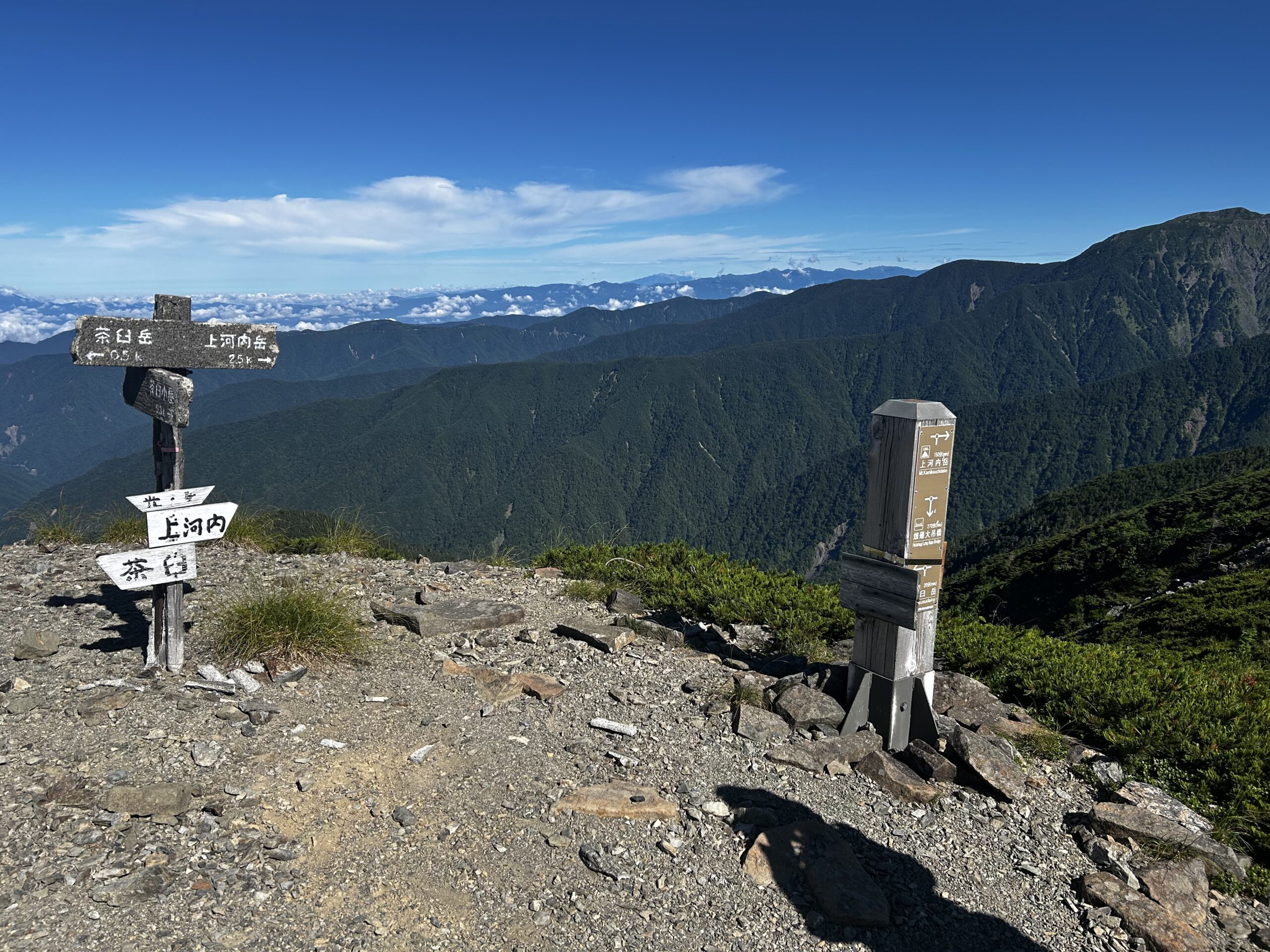 ふと茶臼方向を見ると聖平で抜かれたトレイルランナーが10分前程前に居り、あまり引き離されていないことを知る。