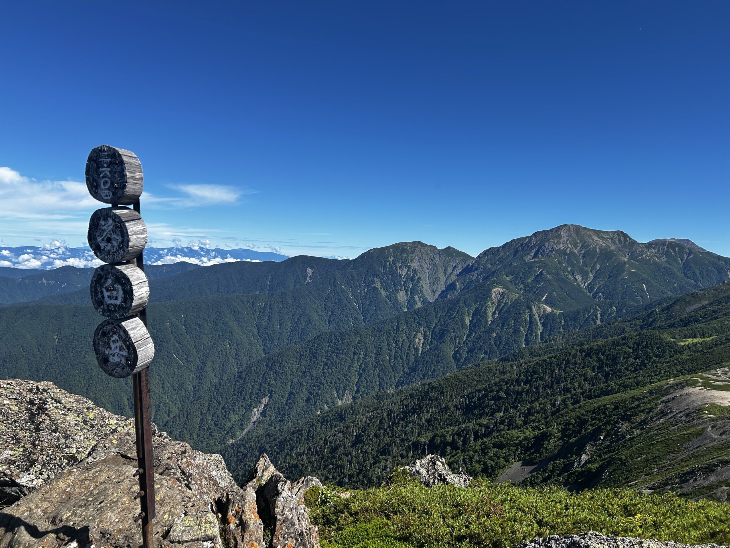 他の登山者から見える山々の名前を教えてほしいと言われ、得意げに「 あれが仙丈ケ岳であれが槍ヶ岳です。今日は白山が見えませんね。 」的に教える。