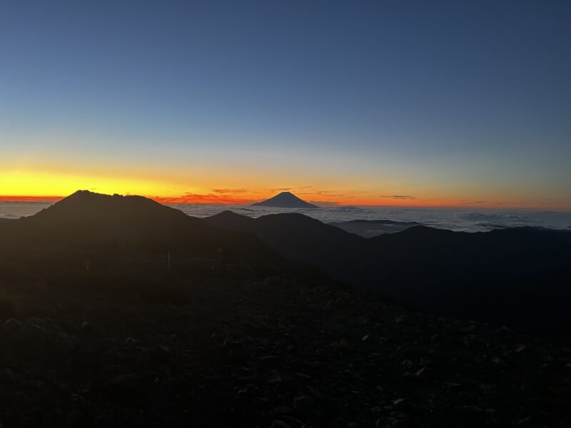 4時ちょうどに到着予定がコケたのと若干のペースダウンで遅れたが、朝焼けタイムには間に合った。